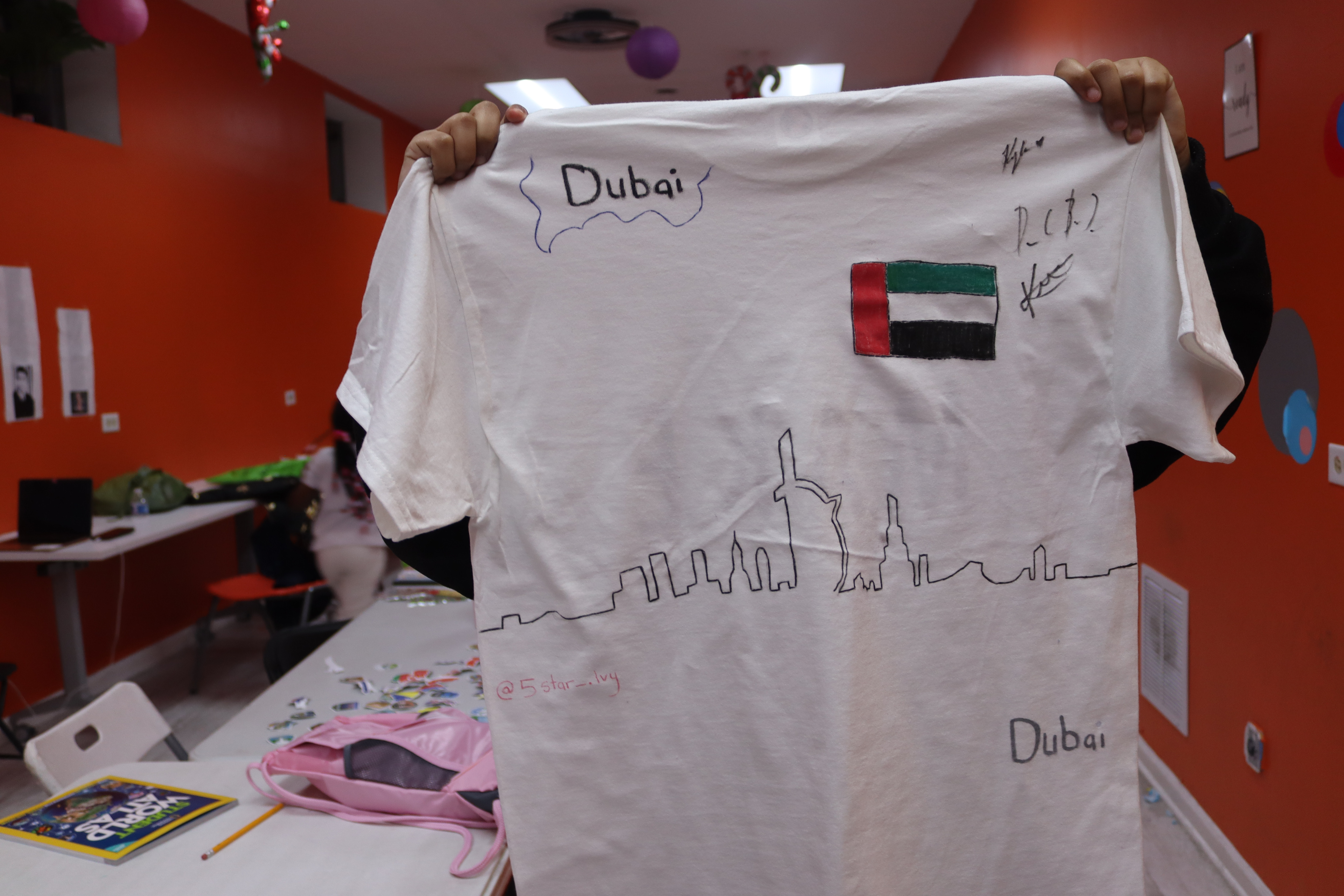 Our programming encouraged the kids to dream beyond their current surroundings. Together, we explored places around the world they wished to visit. With creativity and imagination, they illustrated these destinations on the backs of their shirts, turning their dreams into wearable art. Through conversations and activities, we shared the message that the world is vast, full of opportunity, and within their reach.
